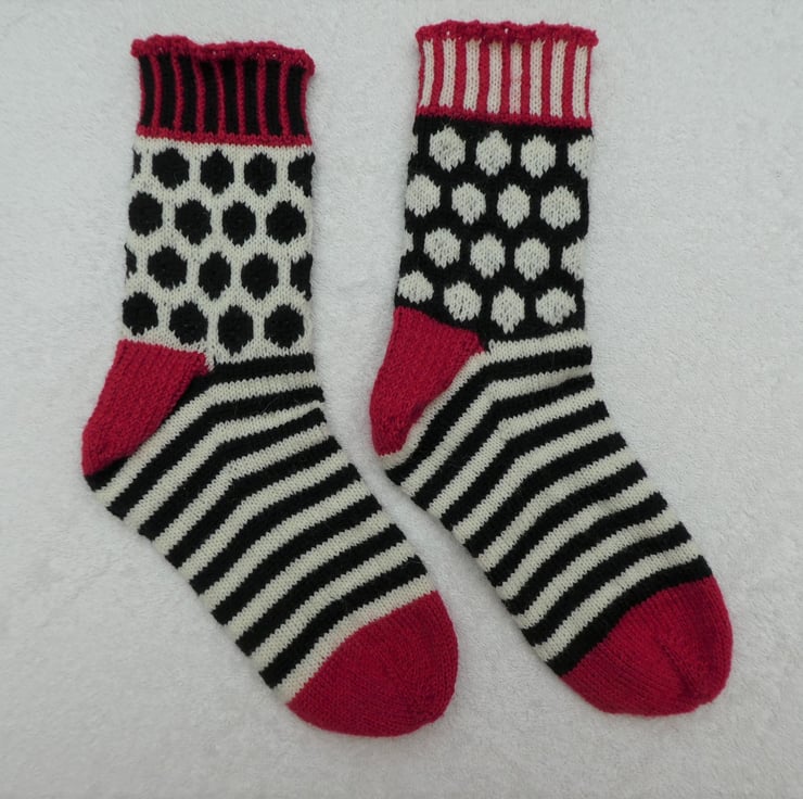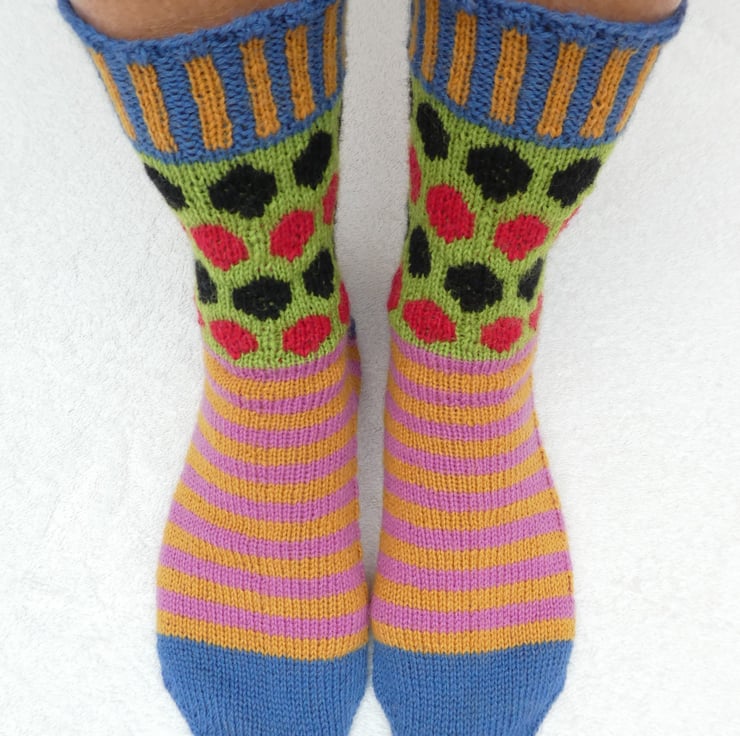 Spots and Stripes Sock Knitting Pattern PDF. Socks 4ply Knitting.  PDF Pattern.