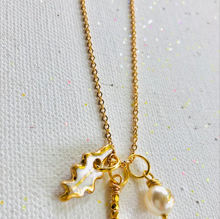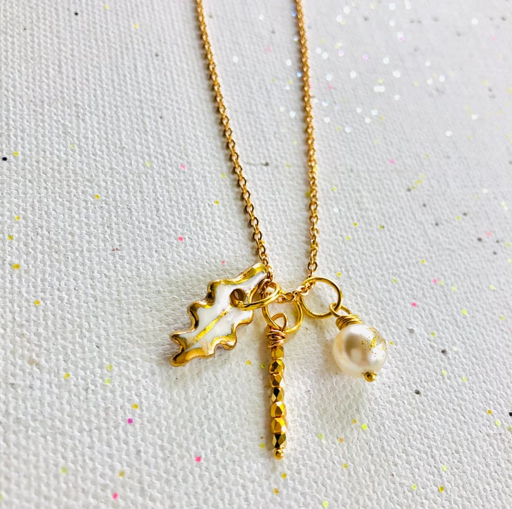 Handcrafted in North Wales, hand painted and 30 hrs of work in each pendant. 10 processes, 4 kiln firings and a lot of love goes in to each piece of my jewellery, ensuring it’s utterly uniqueness. The designs are all hand drawn and turned in to a permanent transfer, the porcelain pendant is hand rolled, cut, shaped and sanded , the 3D relief is printed by hand and also painted using hand blended ceramic paints. Comes gift boxed. The Pearl is vegan (non animal ).