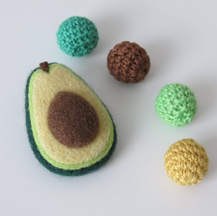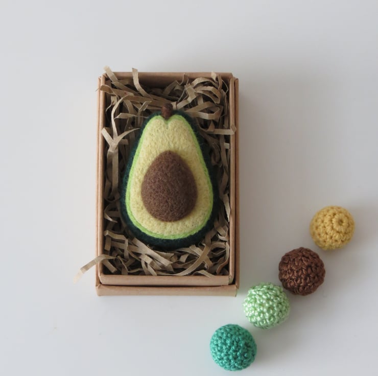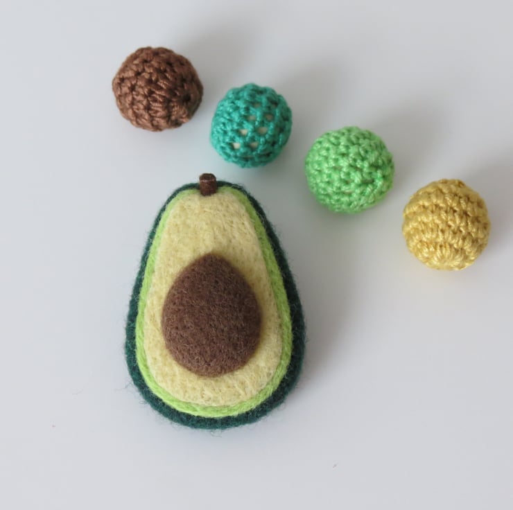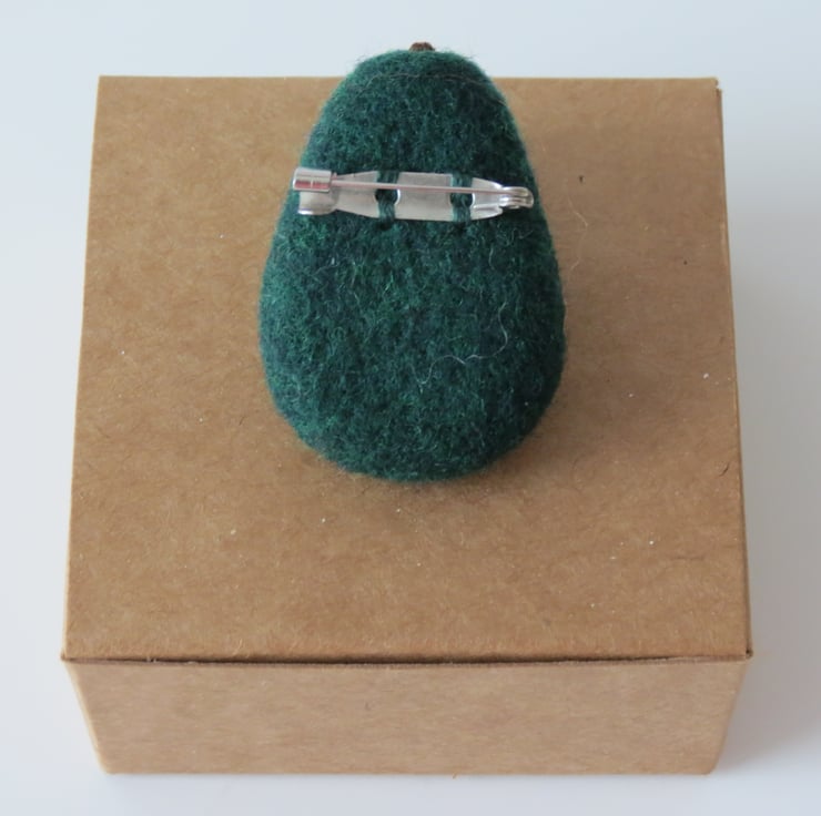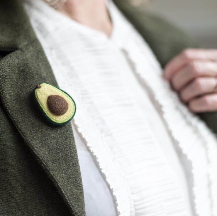 A tactile, piece showcasing our love of avocados in the style of a versatile brooch.