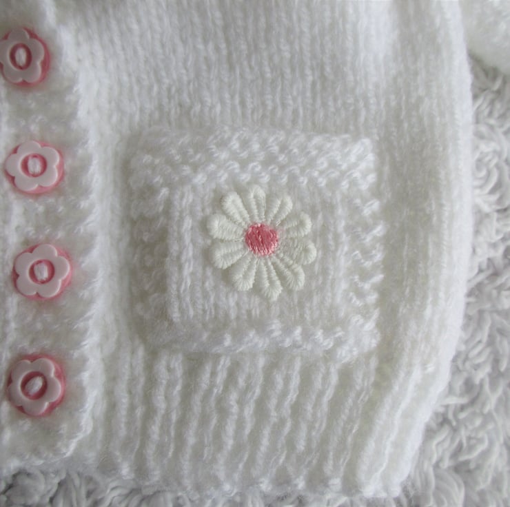 Fastening with 4 Pink with raised white flower Buttons (Girls Way) See Picture