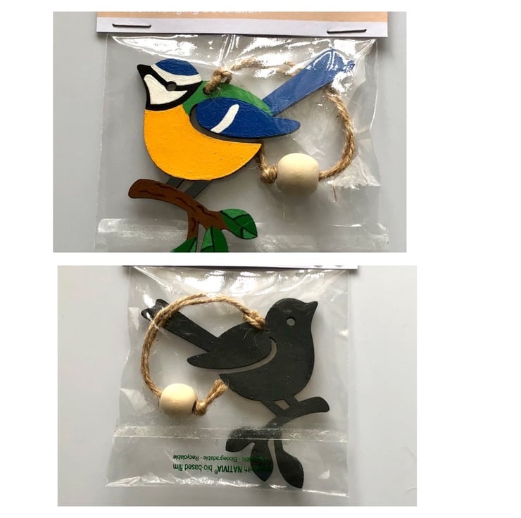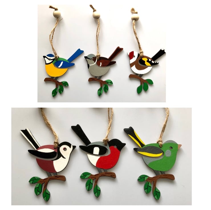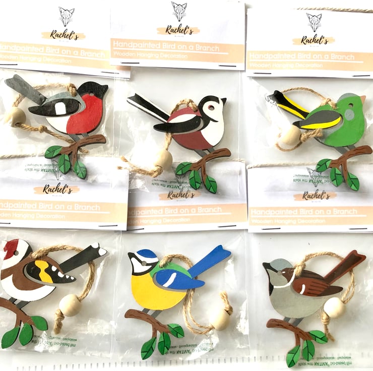 These plywood birds on branch have been handpainted and decorated by me to look like some of my favourite birds.