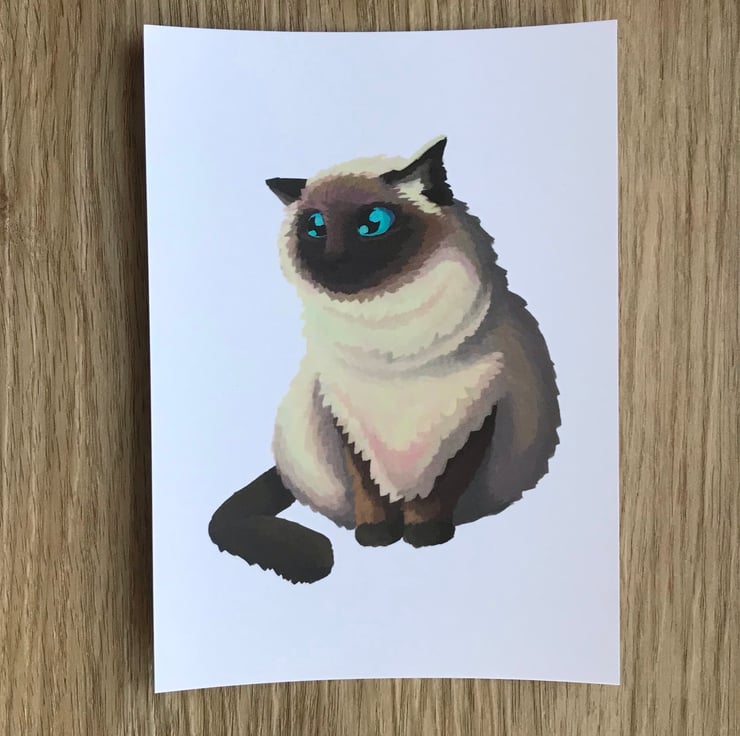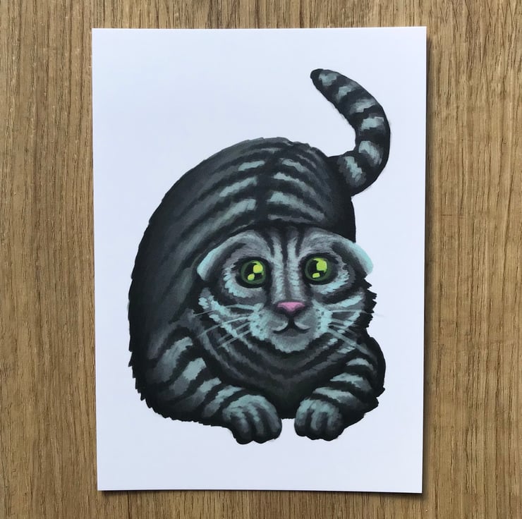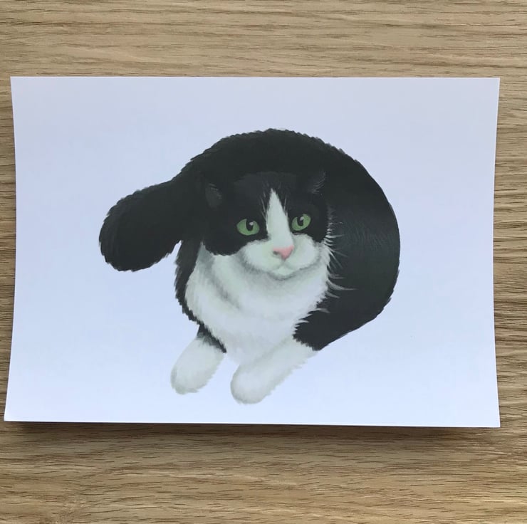 A lovely A6 Pet by DuffleCat Prints (Damian Case) post card. Back of card is blank for your message. 105 x 148 mm. 330gsm card stock.