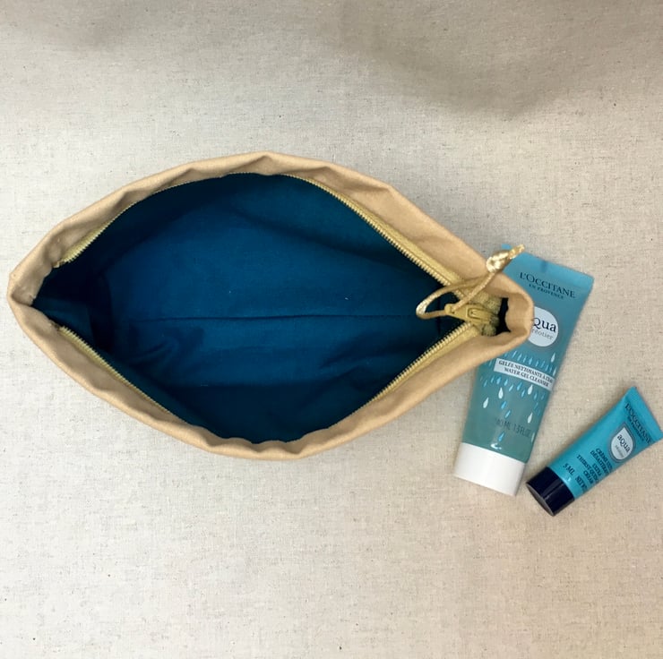 The zip used is a quality YKK zip. Interfacing has been used on the outer fabric to give the pouch structure.