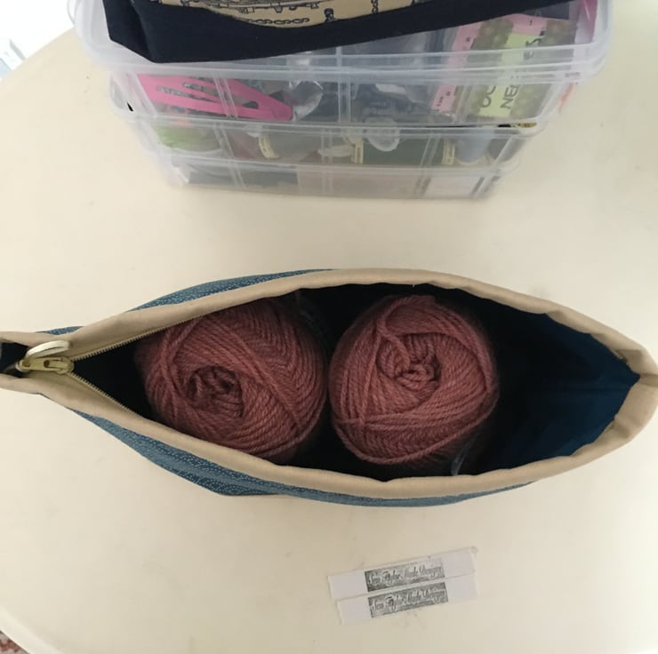 The pouch could be used as a cosmetic bag, make up bag, toiletries bag or for craft projects. As can be seen in the photos it comfortably fits two balls of wool in it.