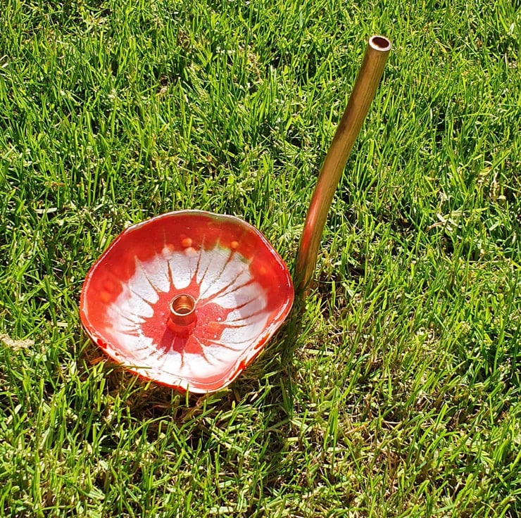The head of the mushroom has a copper tube end, the copper stem is inserted into the ground and the head is then attached.