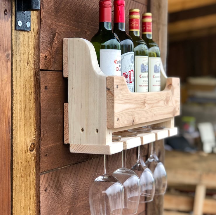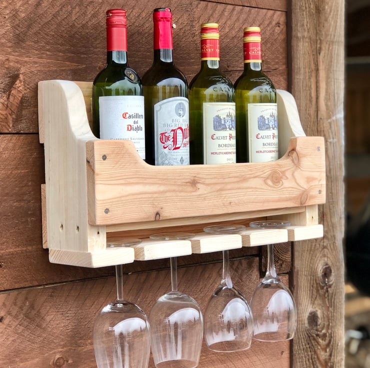 Handmade rustic wooden wine rack.