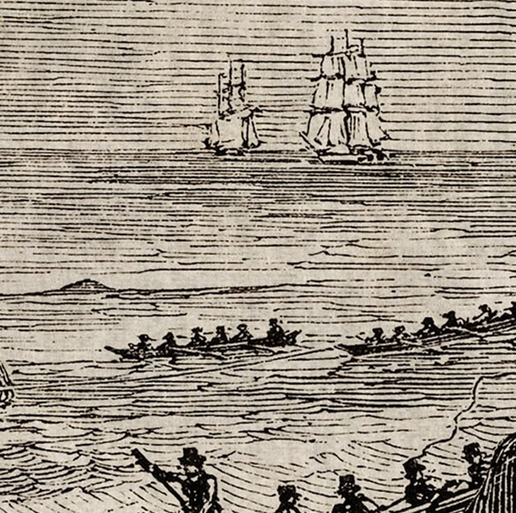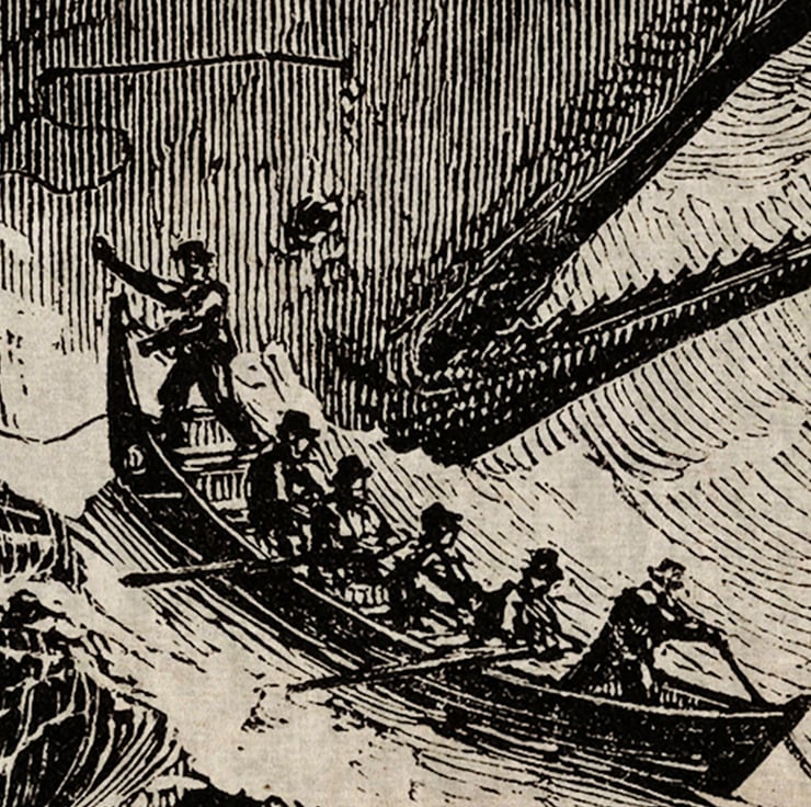Whale etching print on old paper texture