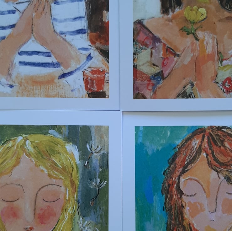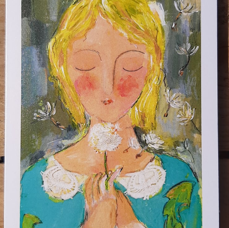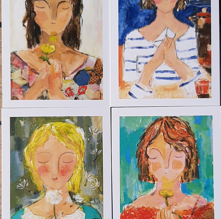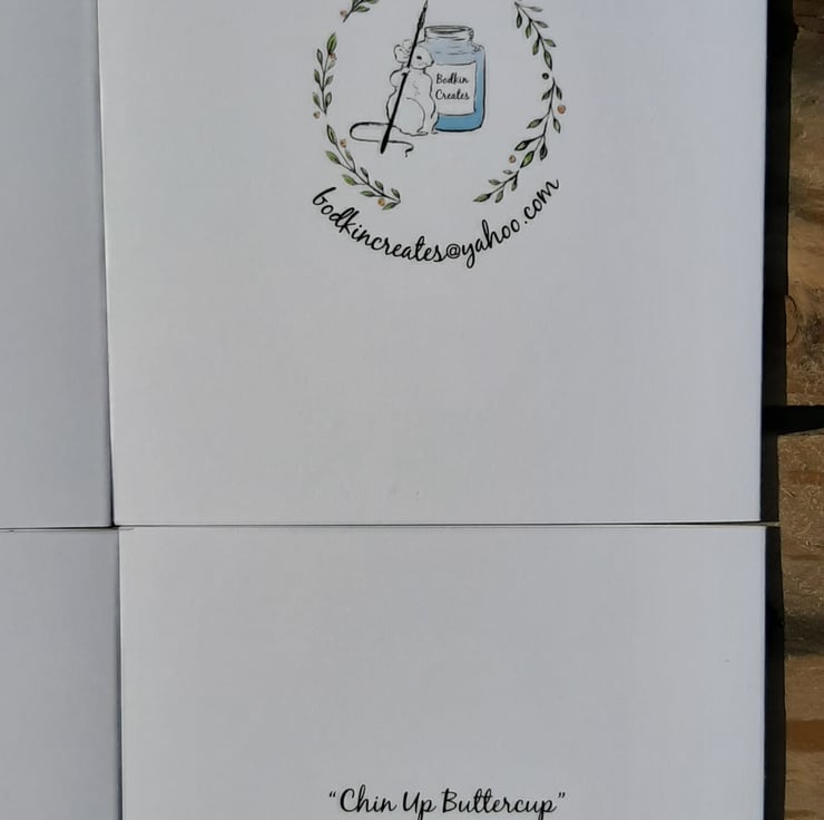 Four different card designs taken from original paintings by artist hesta singlewood . Aka bodkincreates on Instagram. 'Make a wish' 'cornish post and two 'chin up buttercup' I did a small print run so very limited . Very sweet designs and I hope you like them.
