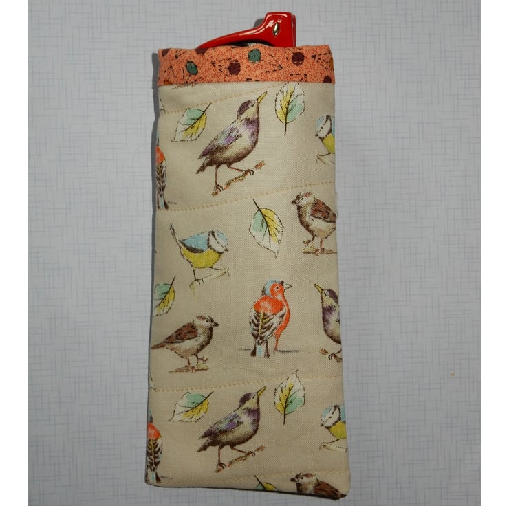 This pretty glasses case would make a lovely gift, or treat yourself. It is made from a lovely fabric featuring garden birds, contrasted with a a modern floral print, used for the trim and lining. It also has a layer of wadding for protection. This is a slip in style glasses case, if you require a case which fastens please view my other listings.