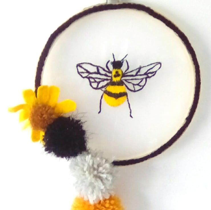 Bumble Bee Embroidery for your home. Unique Hand Embroidered Bee. Bees do an amazing job for our planet.