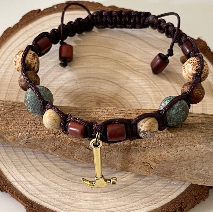 Adjustable men’s brown & green corded bracelet