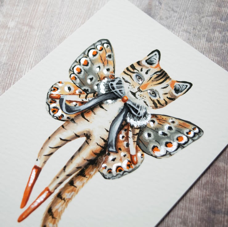 A mini art print featuring my own illustration of a butterfly cat I named Quincy. Isn't he lovely!