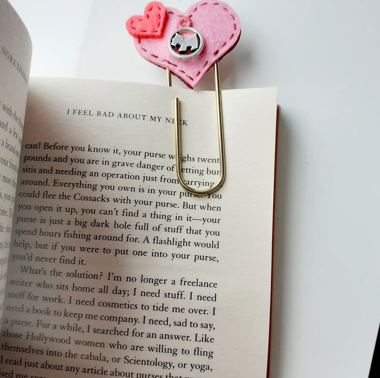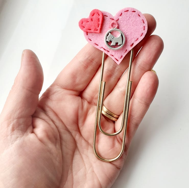 Felt pre-cut hearts have been hand sewn together and embellished with a smaller hand sewn pre-cut heart - For the piece de resistance I have sewn a metal 'scottie dog' charm to the front!