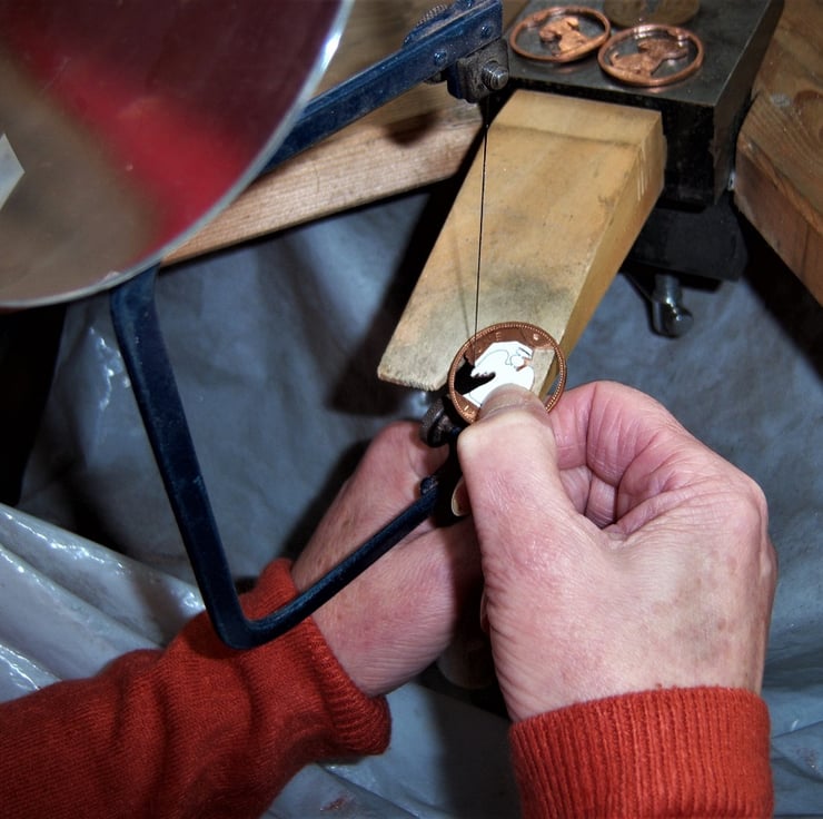 My Grandad left me lots of old coins - halfpennies, pennies & brass 3d bits. I'm gradually working my way through them, developing lots of different ideas as I go along.