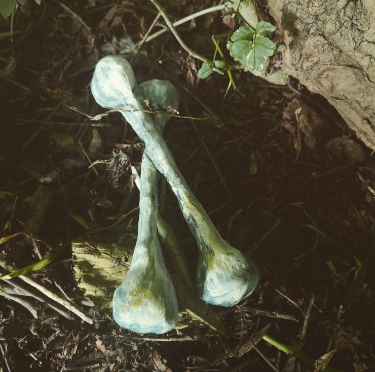 A pair of decomposing bones, brilliant for alters or Halloween decor.