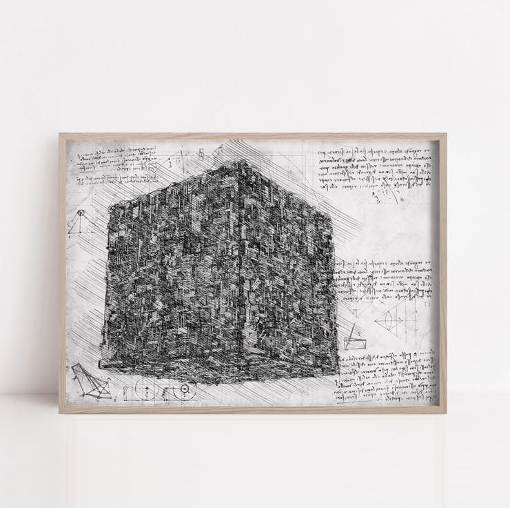 Star Trek Borg Cube Black & White Da Vinci Style print