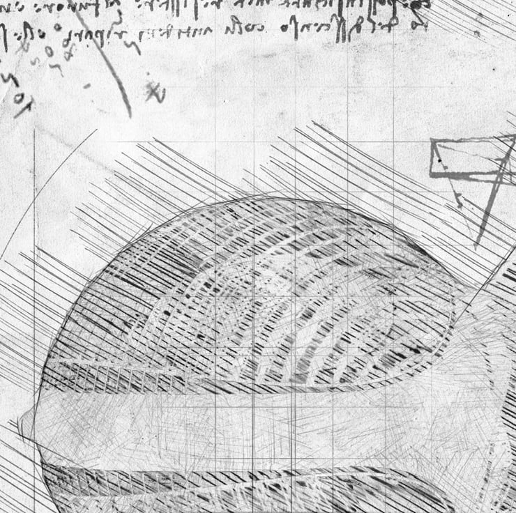 Text on the print is Da Vinci's mirrored short hand and is taken from some of his works, text is undecipherable as this is the mirrored shorthand Da Vinci wrote in when he did not want people to read what he was writing.