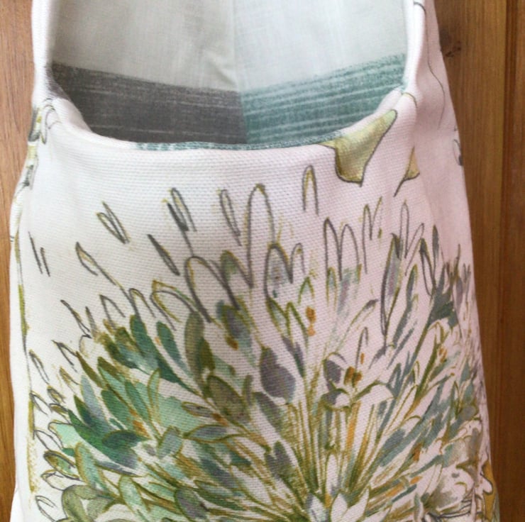 Made from printed cotton fabric. I try to make most of my bags from upcycled fabrics and scrap remnants.