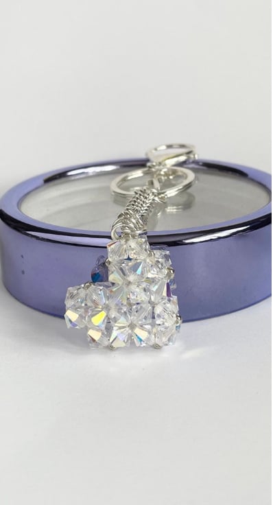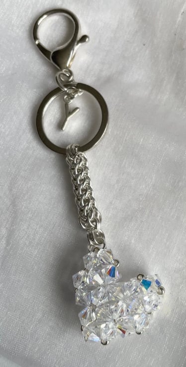 Initialled Crystal Heart Handbag Charm, with a Chainmaille Chain and Keyring
