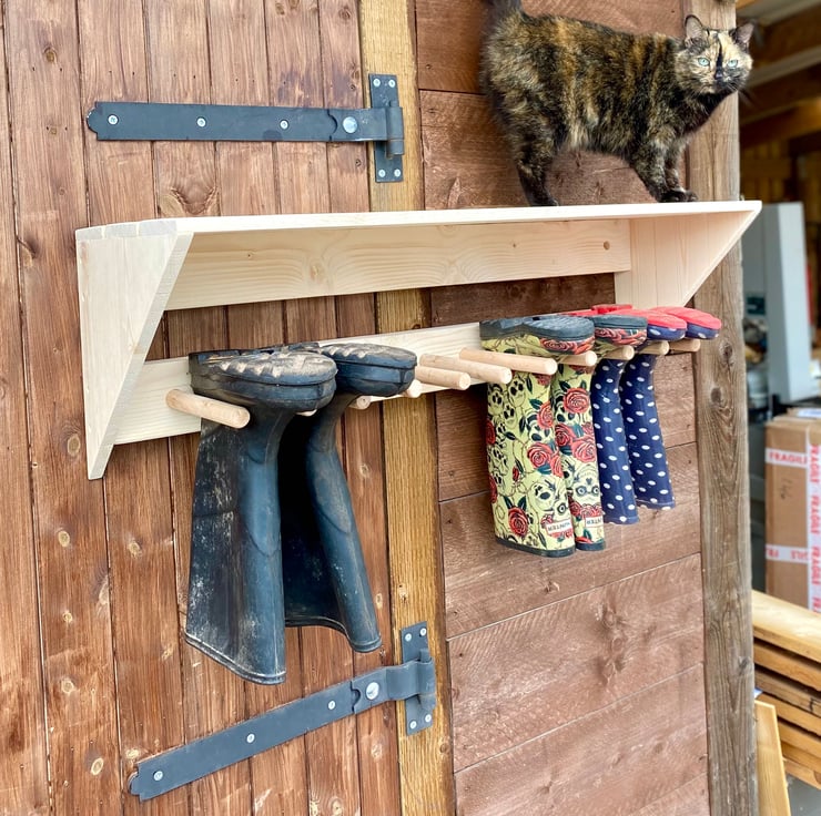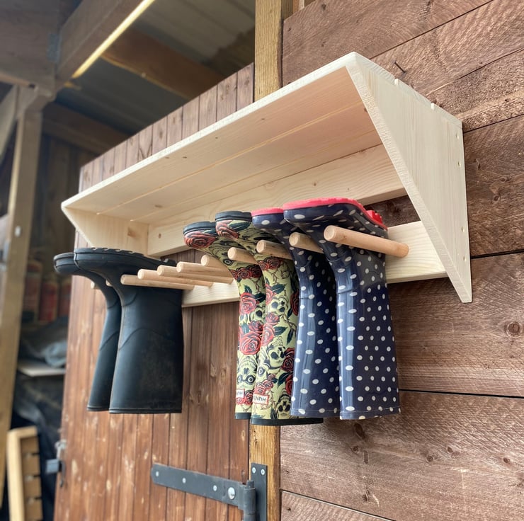 Store your wellies or boots on this solid wooden wall-mounted welly rack.