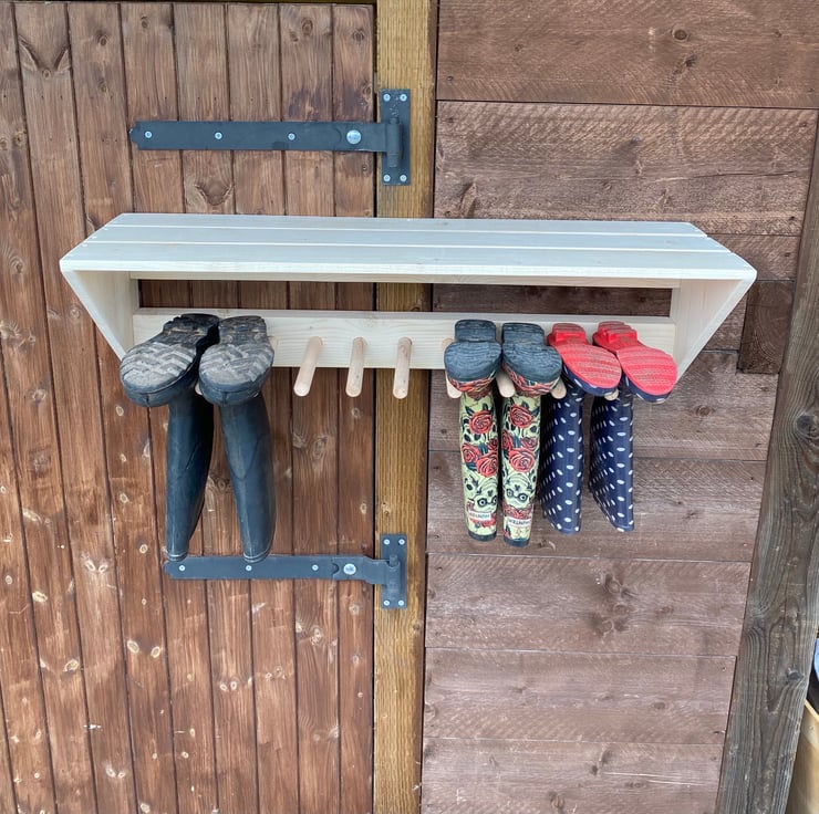 Made from strong solid timber. Each peg is recessed, glued and screwed to provide a strong, solid storage solution for your dirty boots.