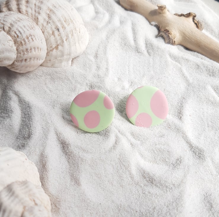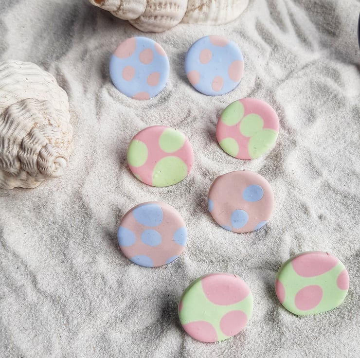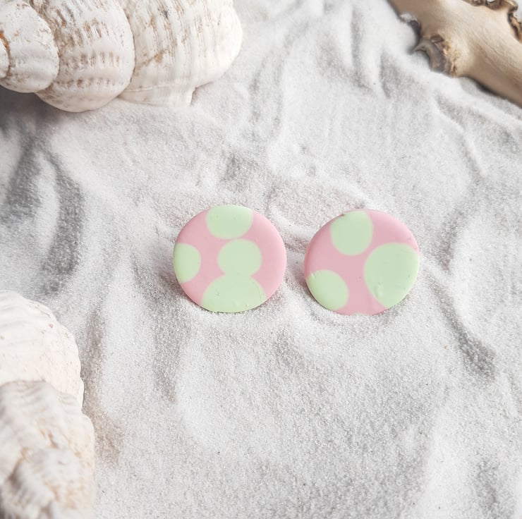 Summer studs, Polymer clay earrings, Pastel studs, Ice cream colours, Large studs, Spotty studs, Circle studs, Bubble studs, Handmade earrings