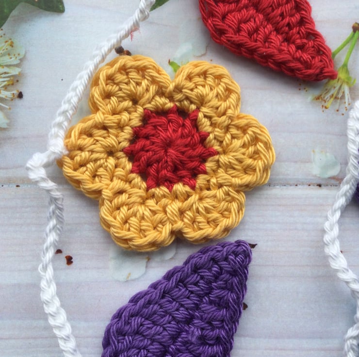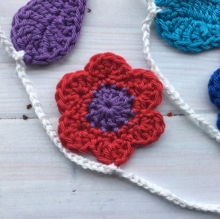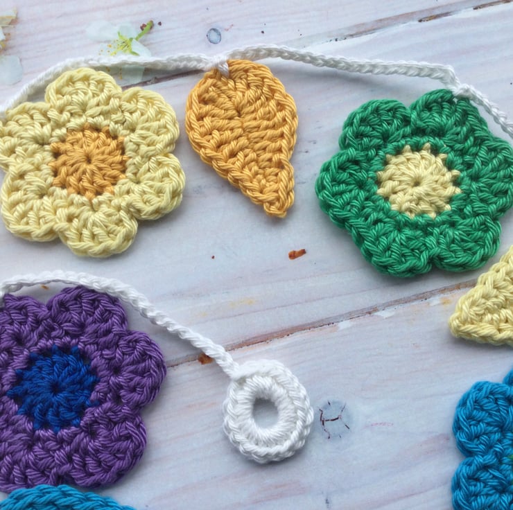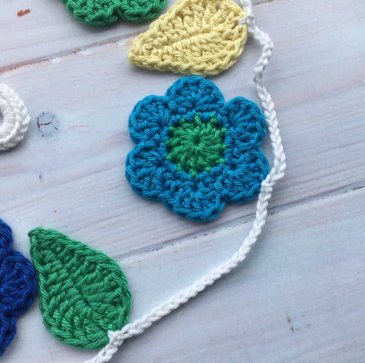 I have crocheted a total of 7 flowers and 6 leaves for this pretty garland.