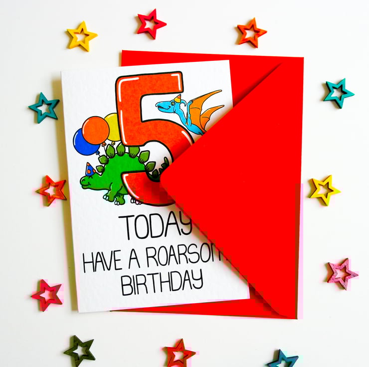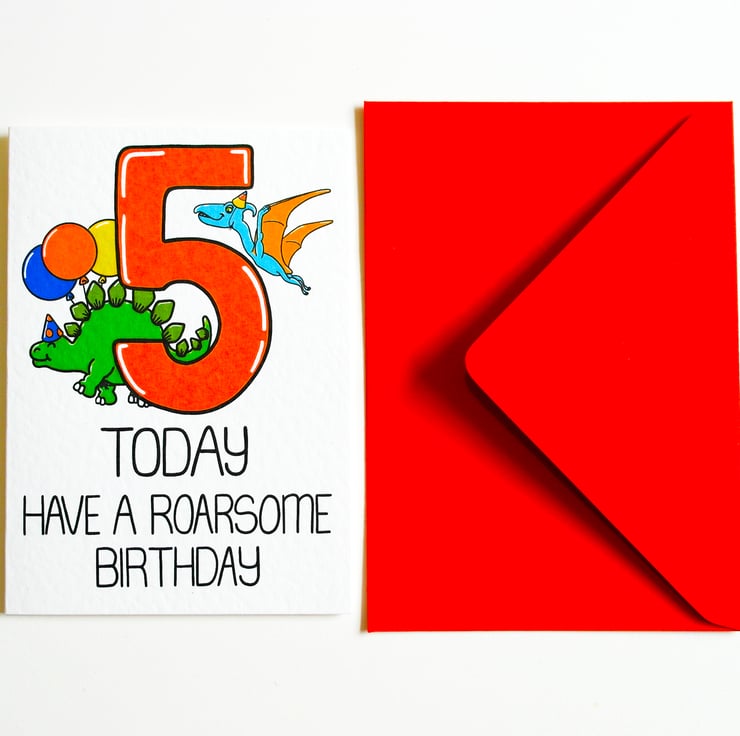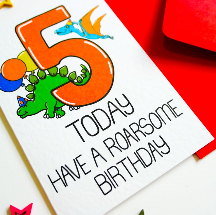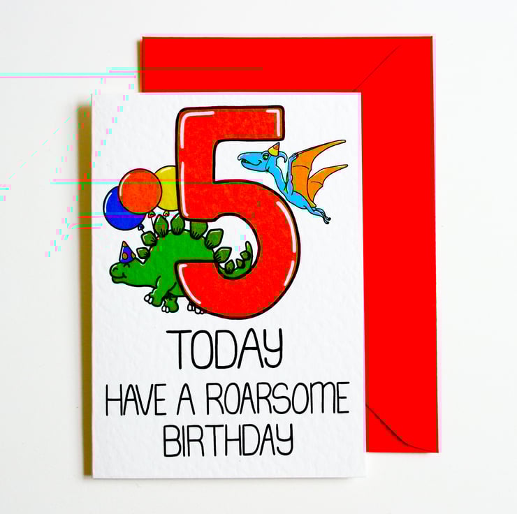 Greeting on front: 5 TODAY HAVE A ROAESOME BIRTHDAY