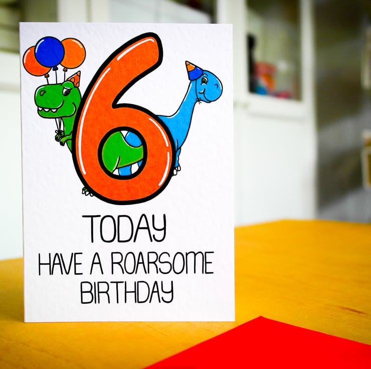 Greeting on front: 6 TODAY HAVE A ROARSOME BIRTHDAY