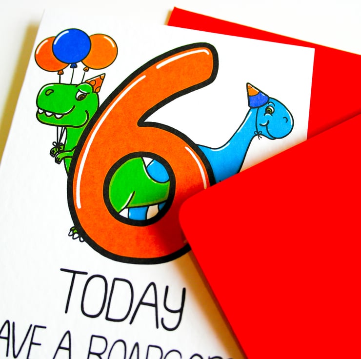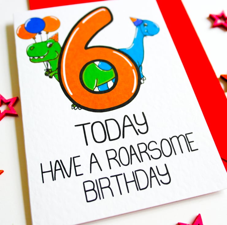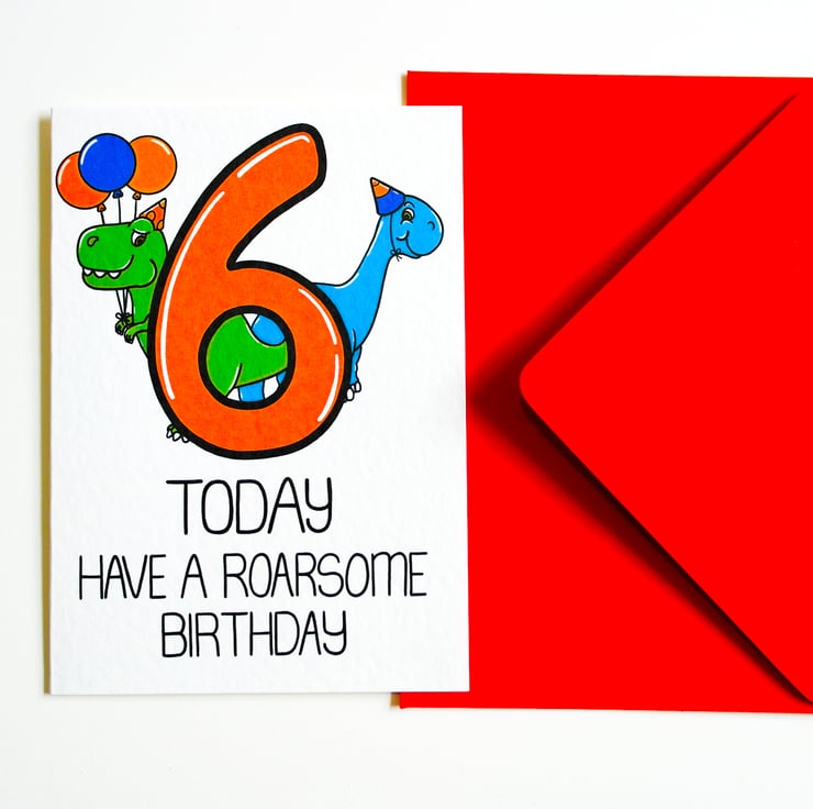 6 Today Have A Roarsome Birthday Card, Child's Dino Card, 6th Birthday Child Son