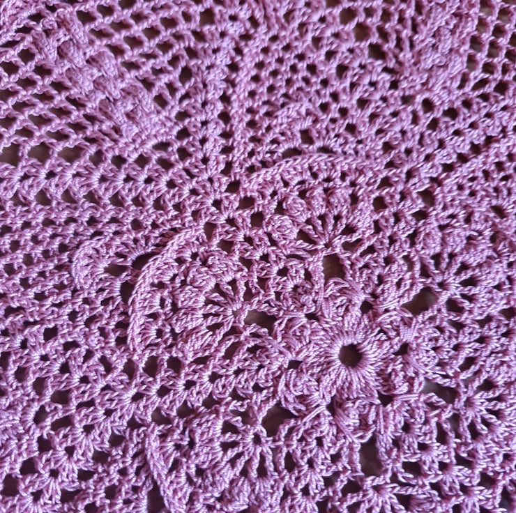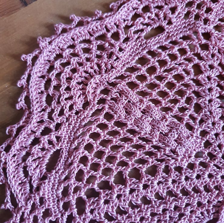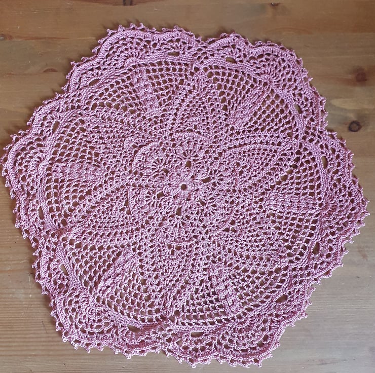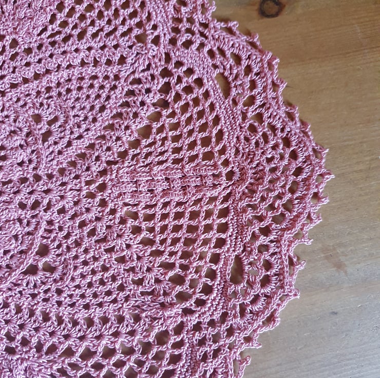 Measuring 32m across this lovely pink table decoration has been hand crocheted in 100% mercerised cotton