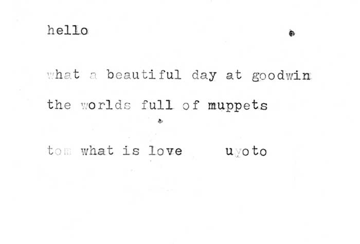 This is an Artist's Book created as part of a collaborative art residency project in Hull 2016 - 2017. Local residents were invited to sit at a make shift table and chairs made from pallets and straw bales and type, on a type writer, their response to the question 'what if?' The story of the project is told in the beginning of the book and the contributions people made were digitally added.