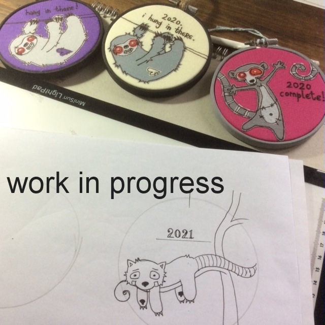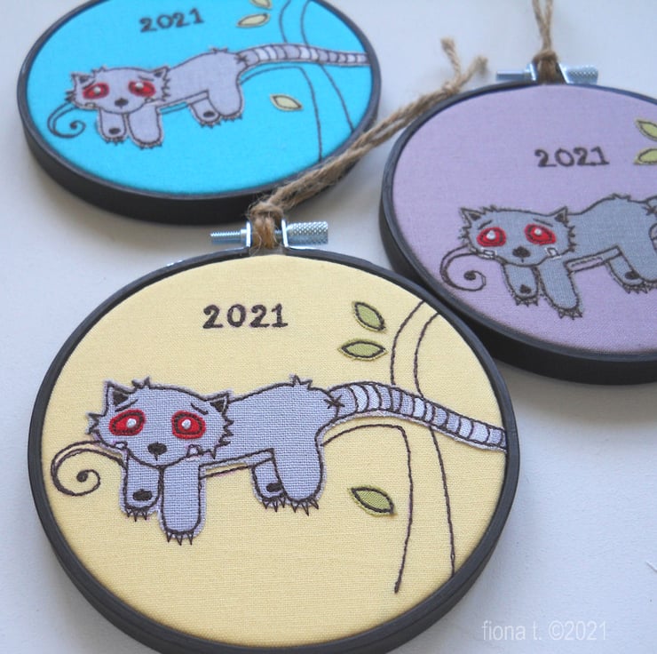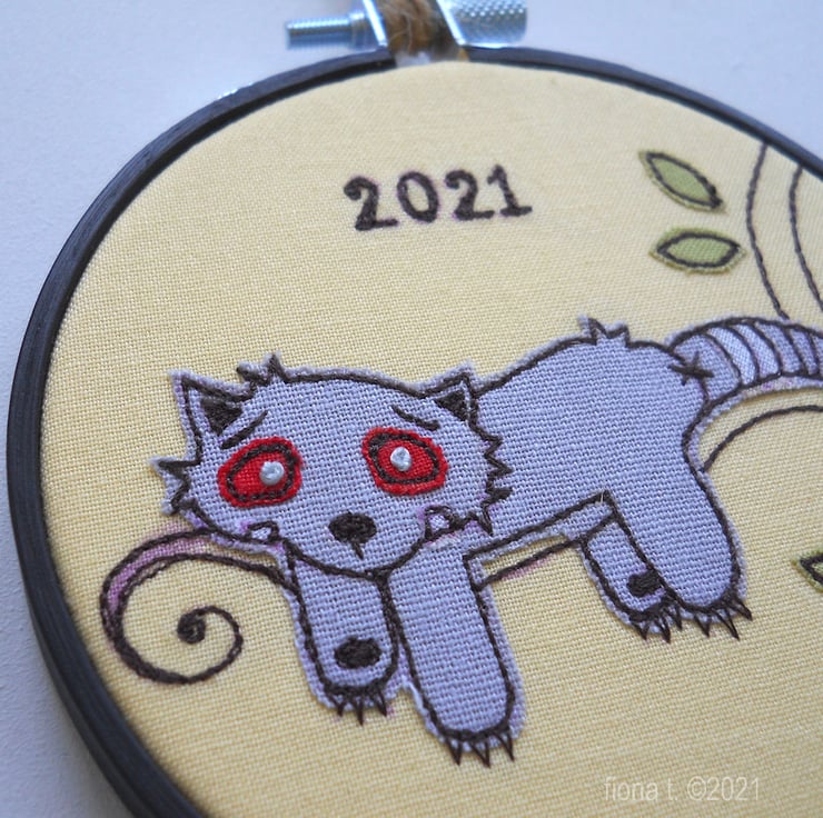 the text "2021" is written freehand, and the hoop is similarly signed & dated on the reverse.