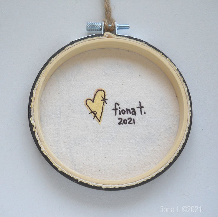 the hoop is backed with cotton calico, and there's a coordinating heart & text on the reverse.