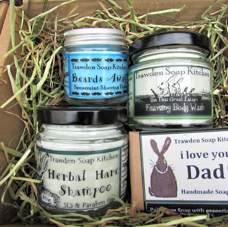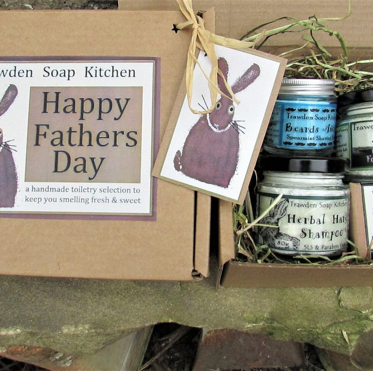 A Cruelty Free toiletry selection, presented in an eco friendly box with gift tag for Dad, to celebrate Fathers Day or indeed, Birthday.