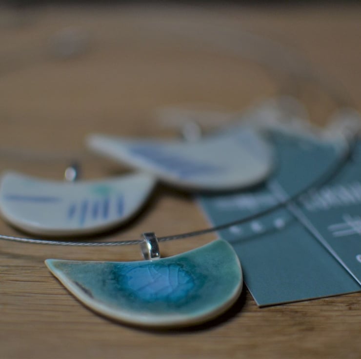 This handmade Skyline pendant is from my moon boat collection of porcelain pendants.