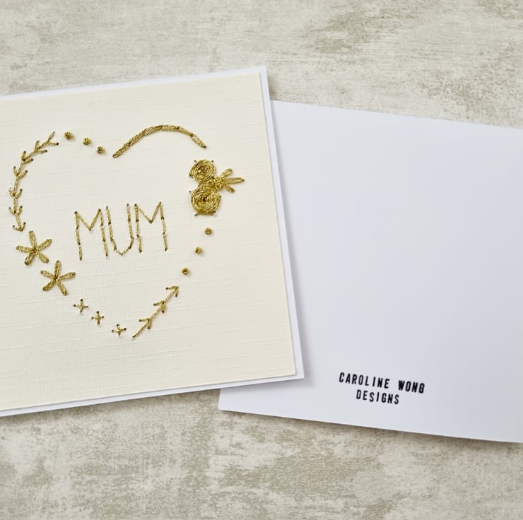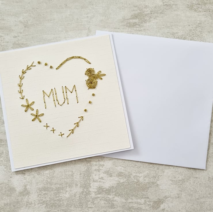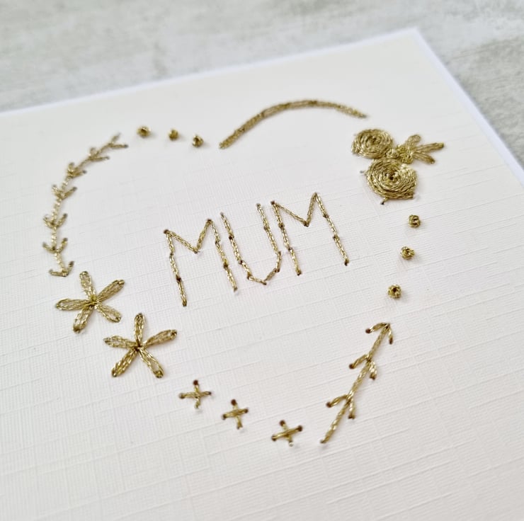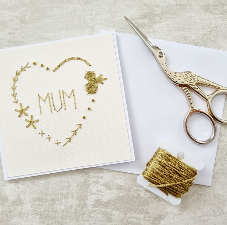 Mum Embroidered Gold Card, Mother's Day Card, New Mum Card