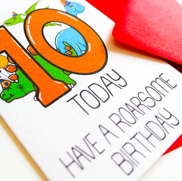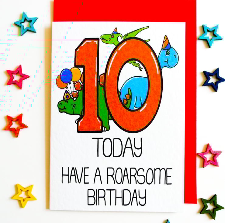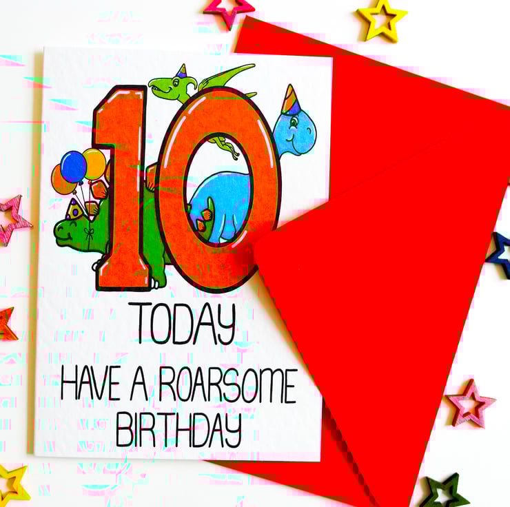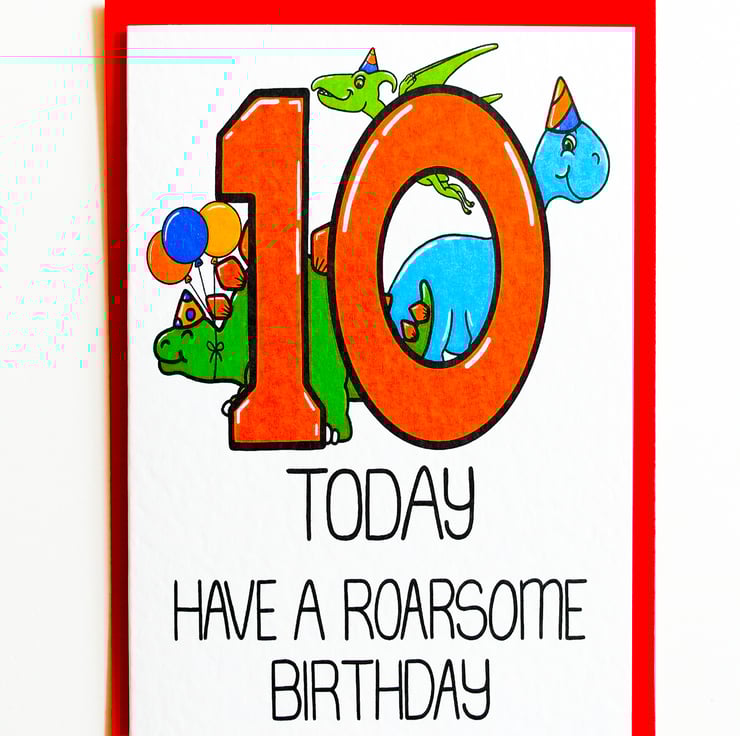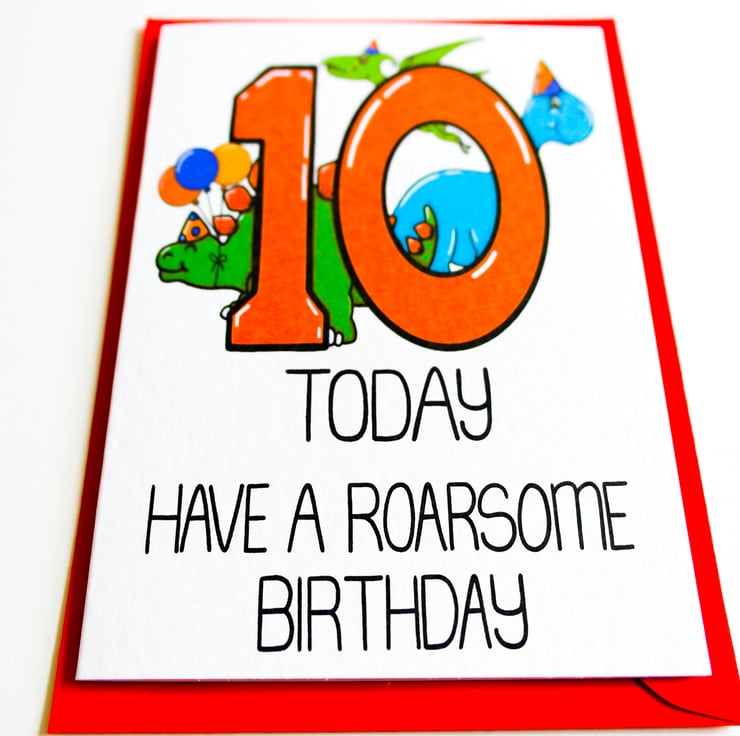 Greeting on front: 10 TODAY HAVE A ROARSOME BIRTHDAY