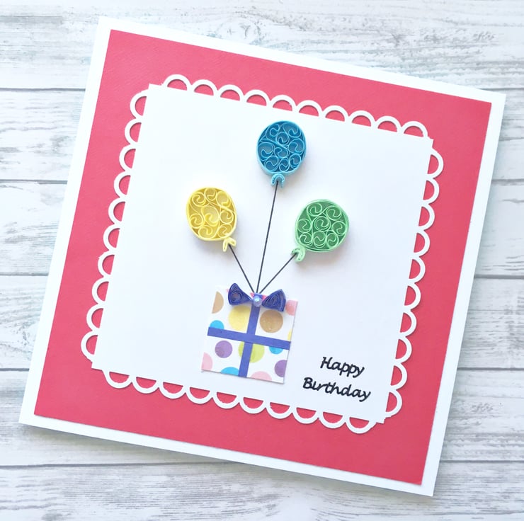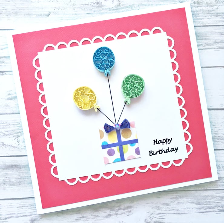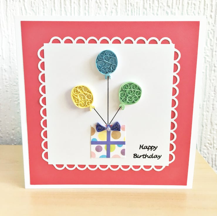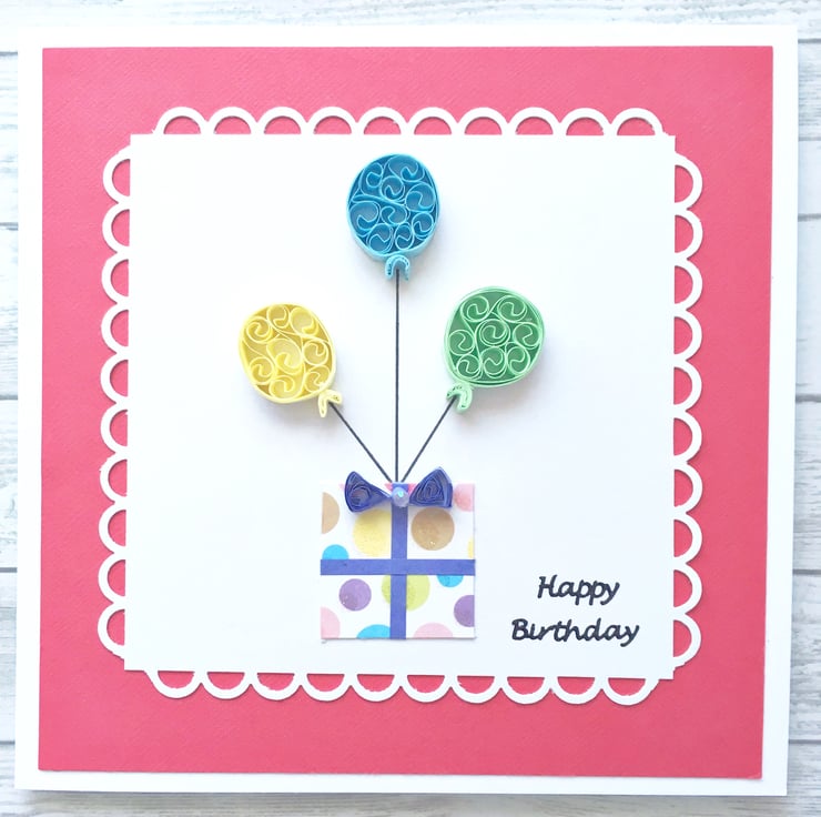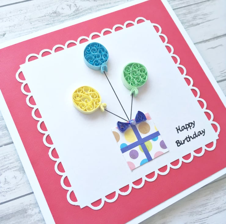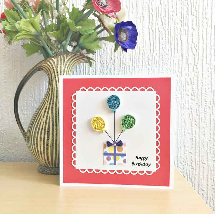 A bright and colourful hand-quilled card for any birthday.