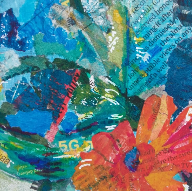 In the original, paper collage and acrylics were used.