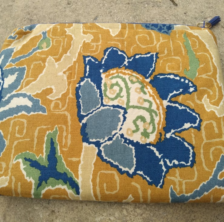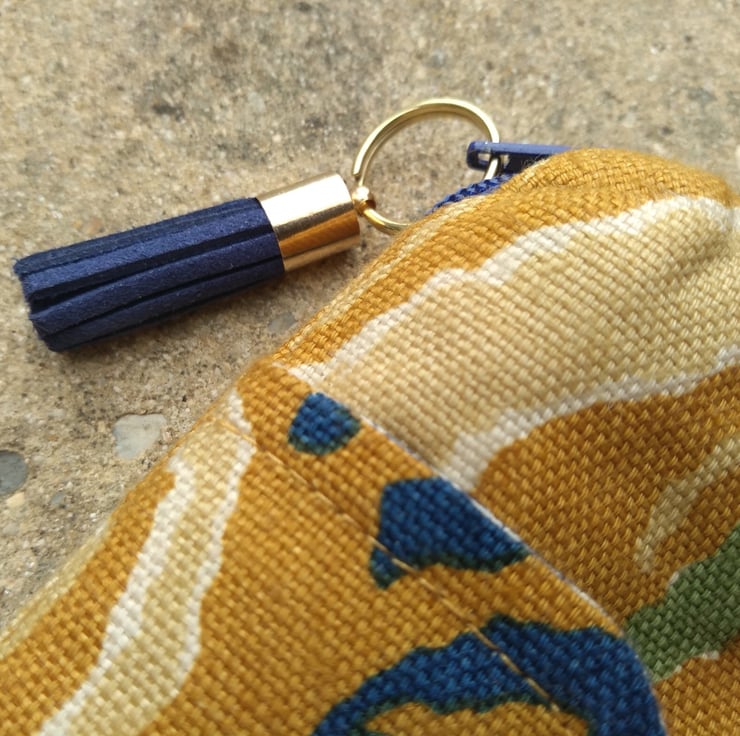 Each layer of fabric has been interlined with interfacing and pure cotton wadding to provide ample padded protection for your tablet. The rich-blue zip enclosure is at the top and has been finished with a mini, pure-suede blue tassel as a handy pull.