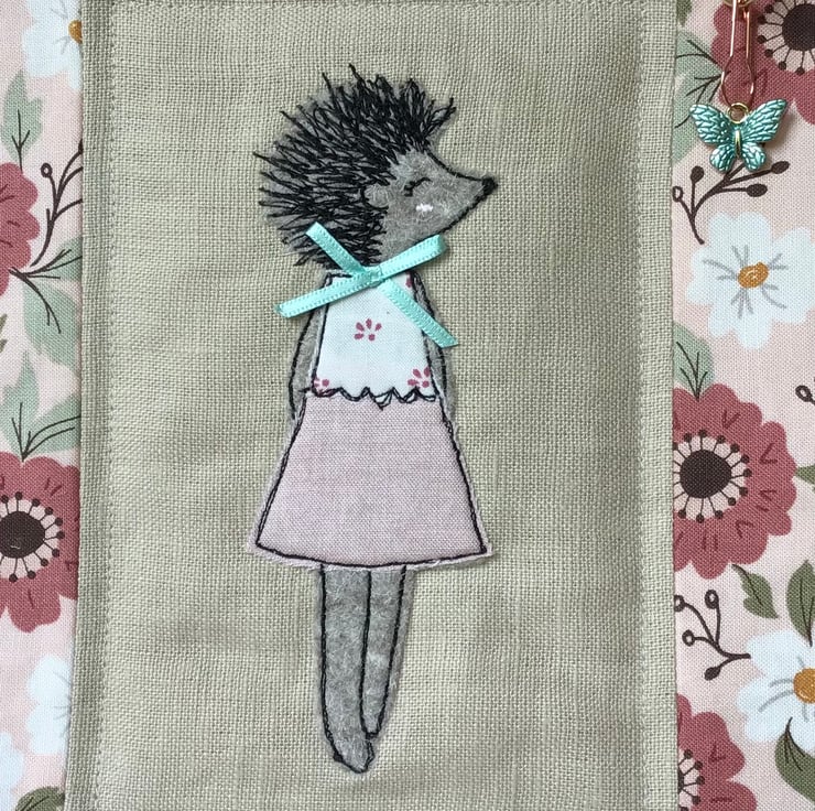 I have free motion embroidered Harriet on some beautiful natural linen.