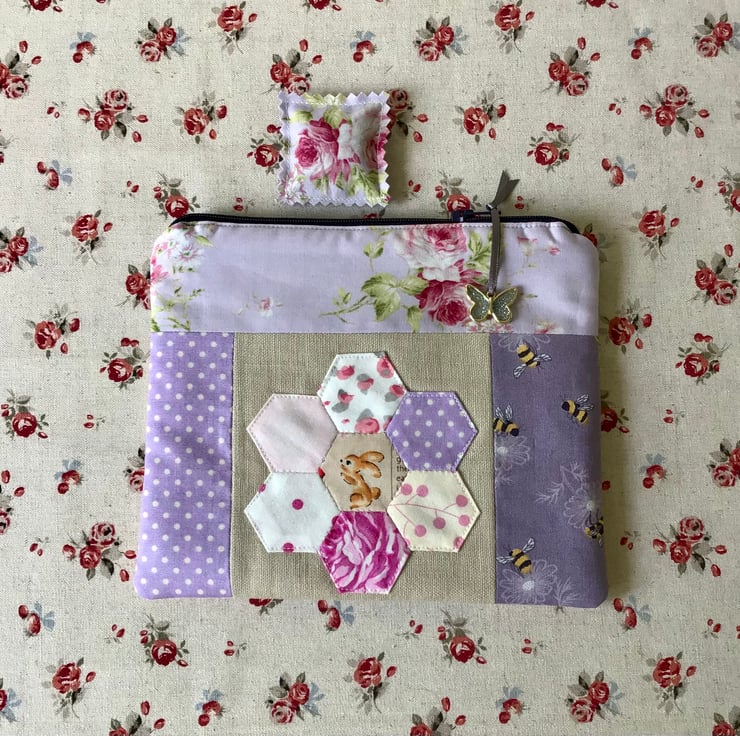 I love a cute notions pouch, I’d like one in every project bag. I just love this one with it’s little hexie flower on the front.