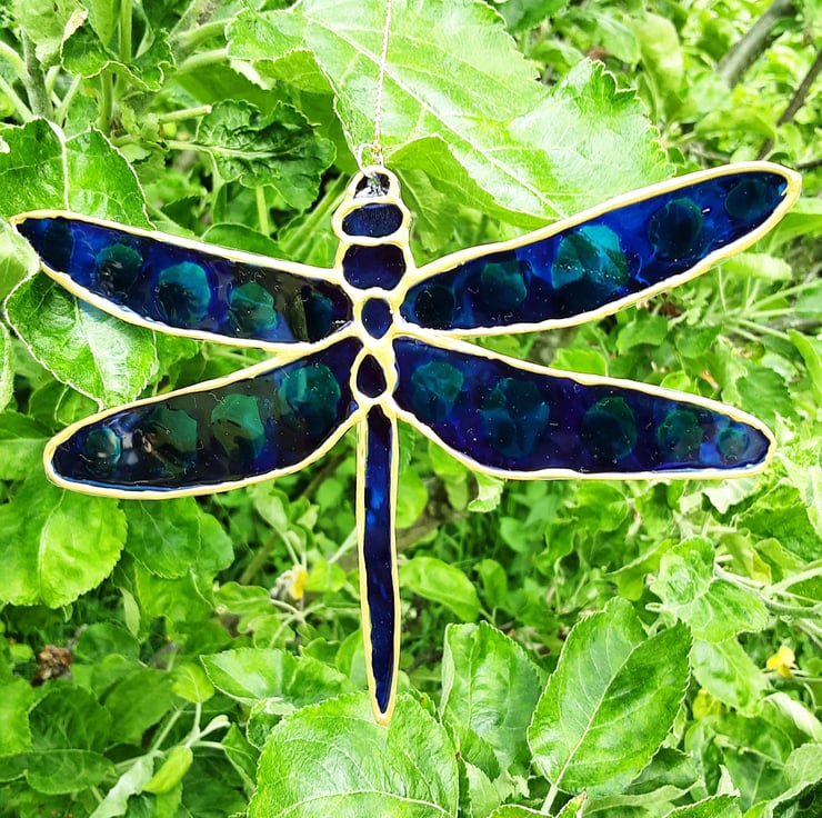 Size approximately 6 inches x 4.5 "not including the gold thread to hang it from.