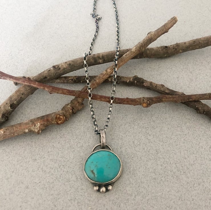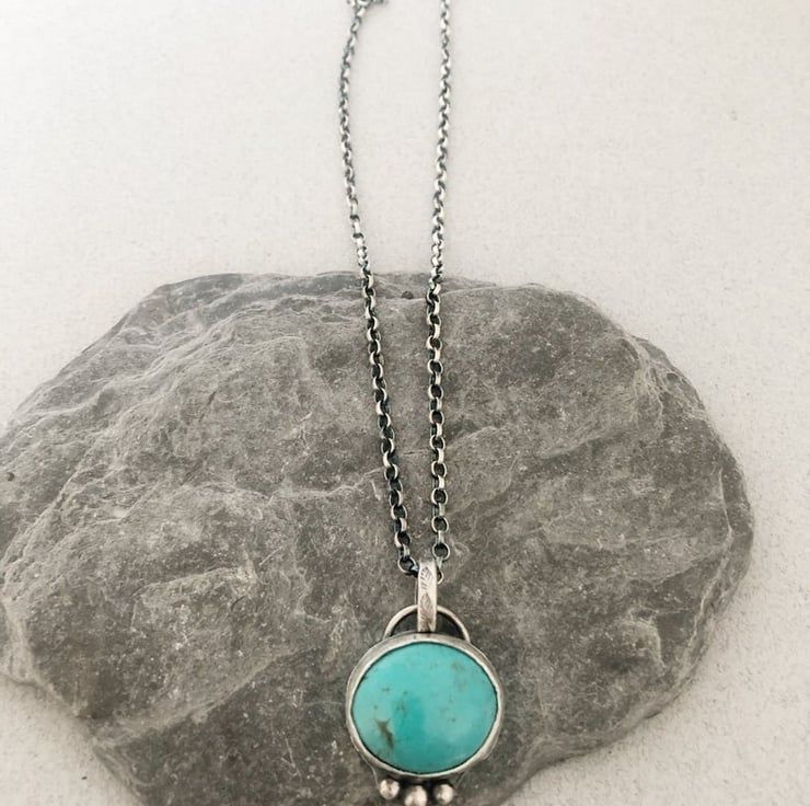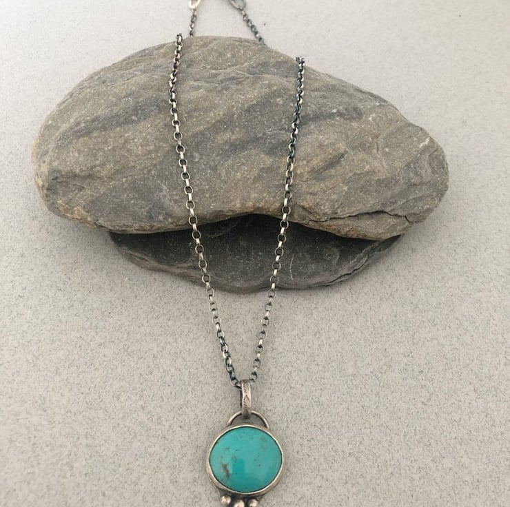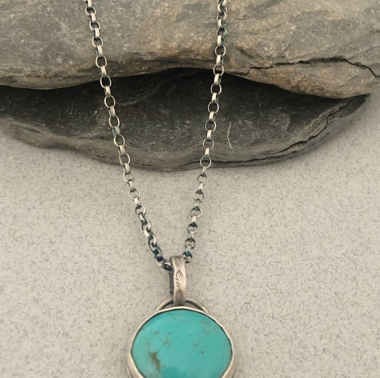 This listing is for a lovely, authentic turquoise stone set in sterling silver and suspended from an 18 inch silver chain.