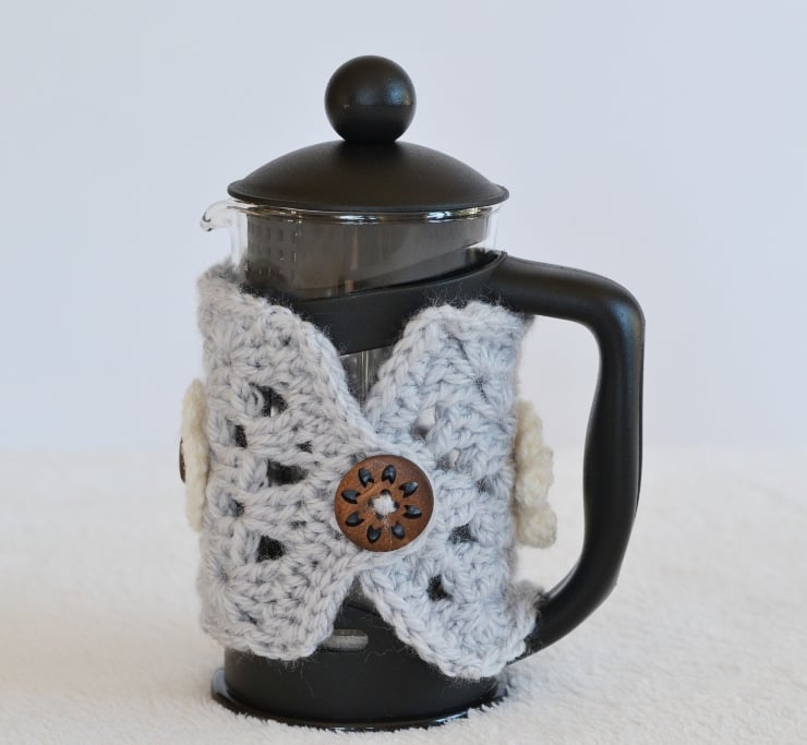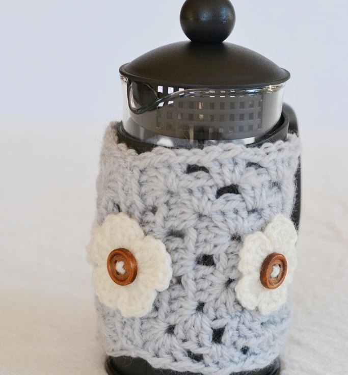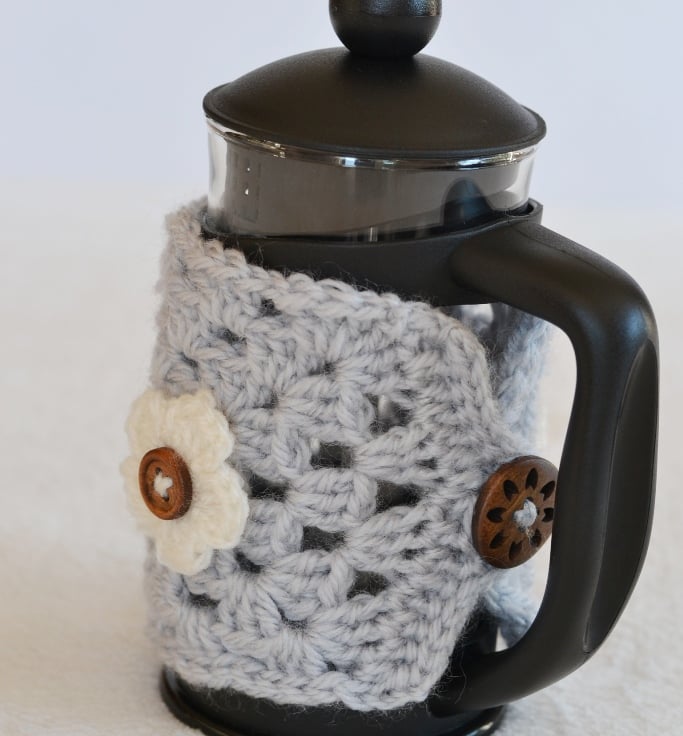 You will just love my latest creation. Crocheted grey granny squares which I have tunred in a cozy for 3 cup caffettieres. Crocheted in grey in 100% acrylic aran yarn.