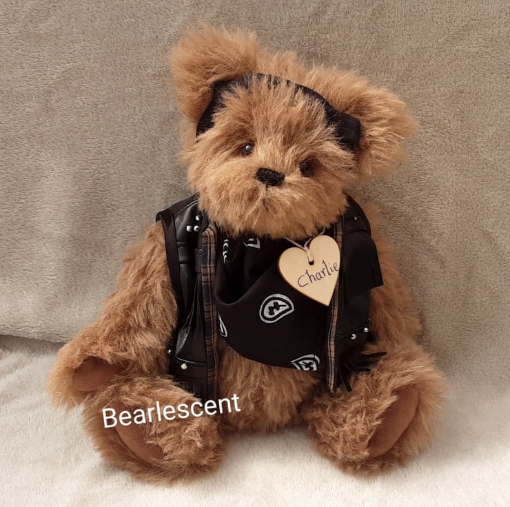 Reserved listing for Tracey, commission bear, Charlie Biker Bear