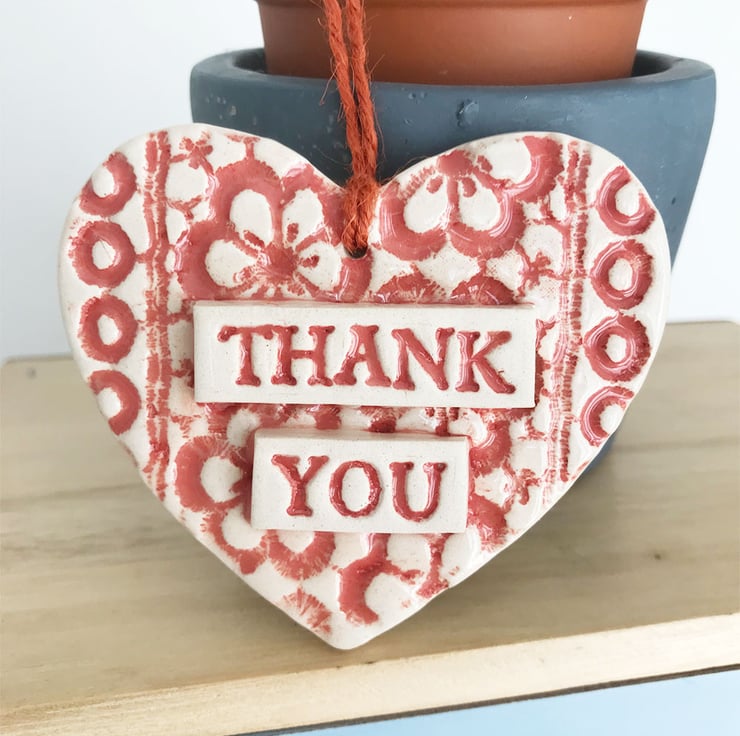 Ceramic heart floral decoration Thank You Teacher Gift Pottery heart Salmon red