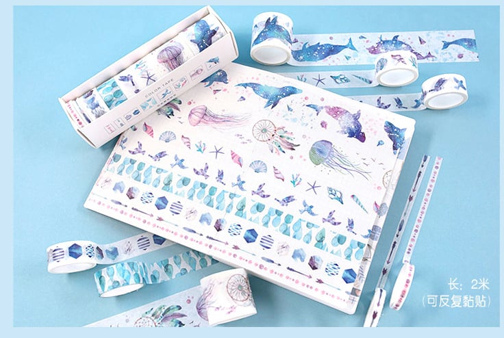 Set of 8 Patterned decorative adhesive tape, washi tapes.