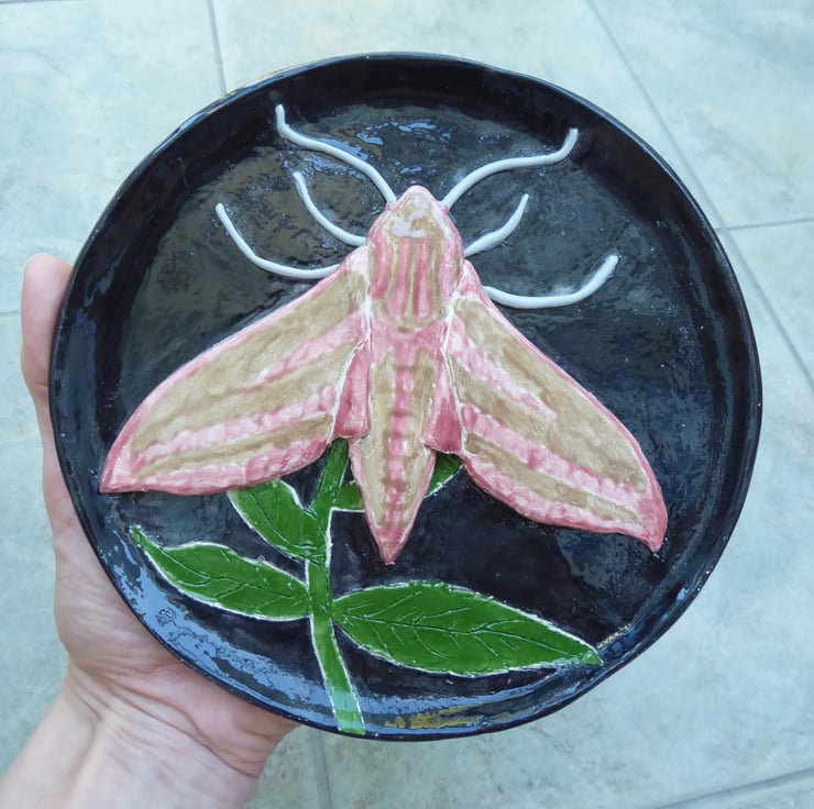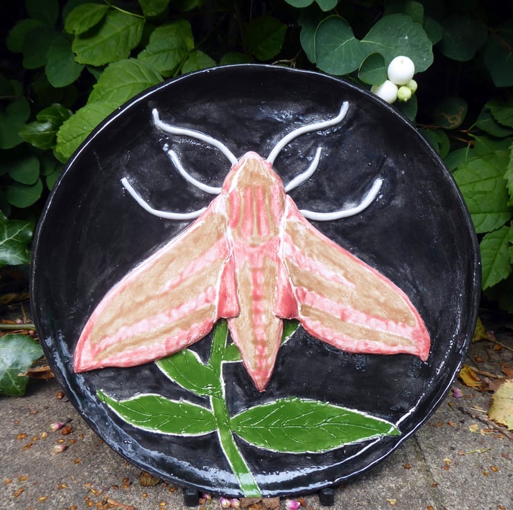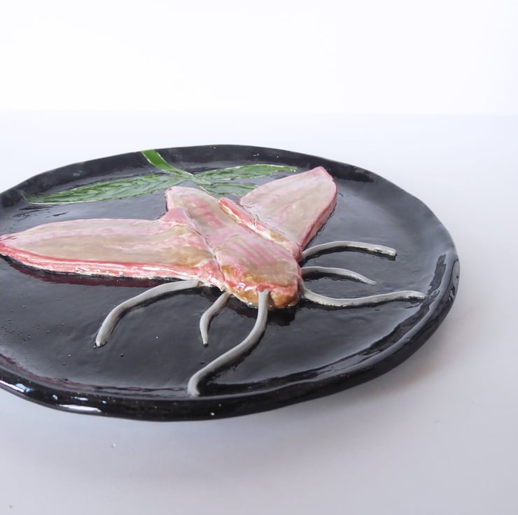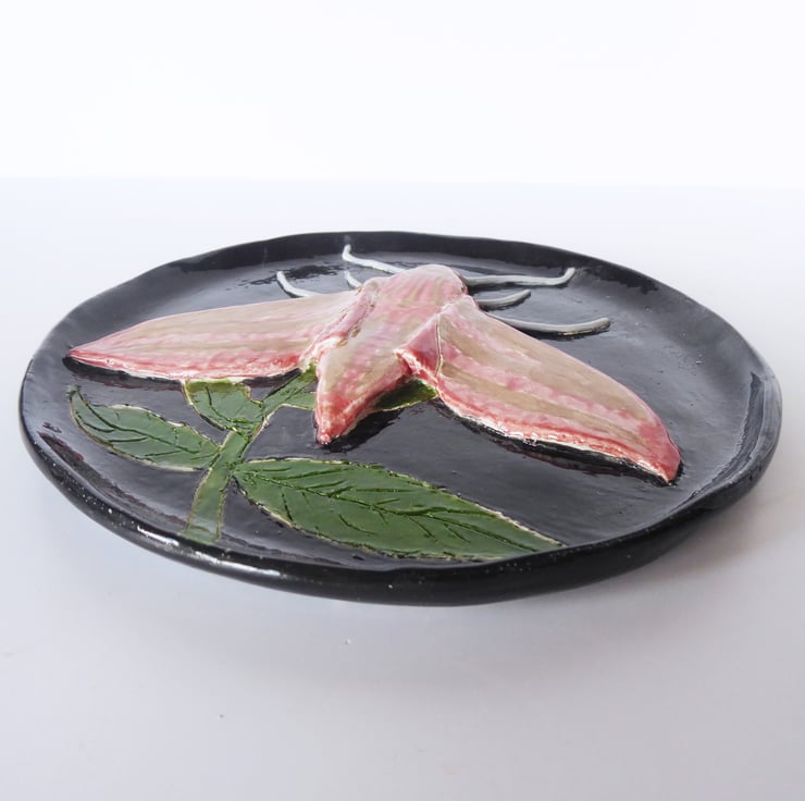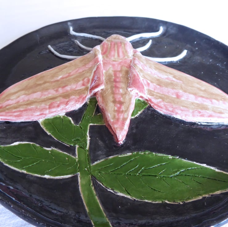 Elephant Hawk Moth Ceramic Plate - Hand Sculpted - by Jacqueline Talbot Designs